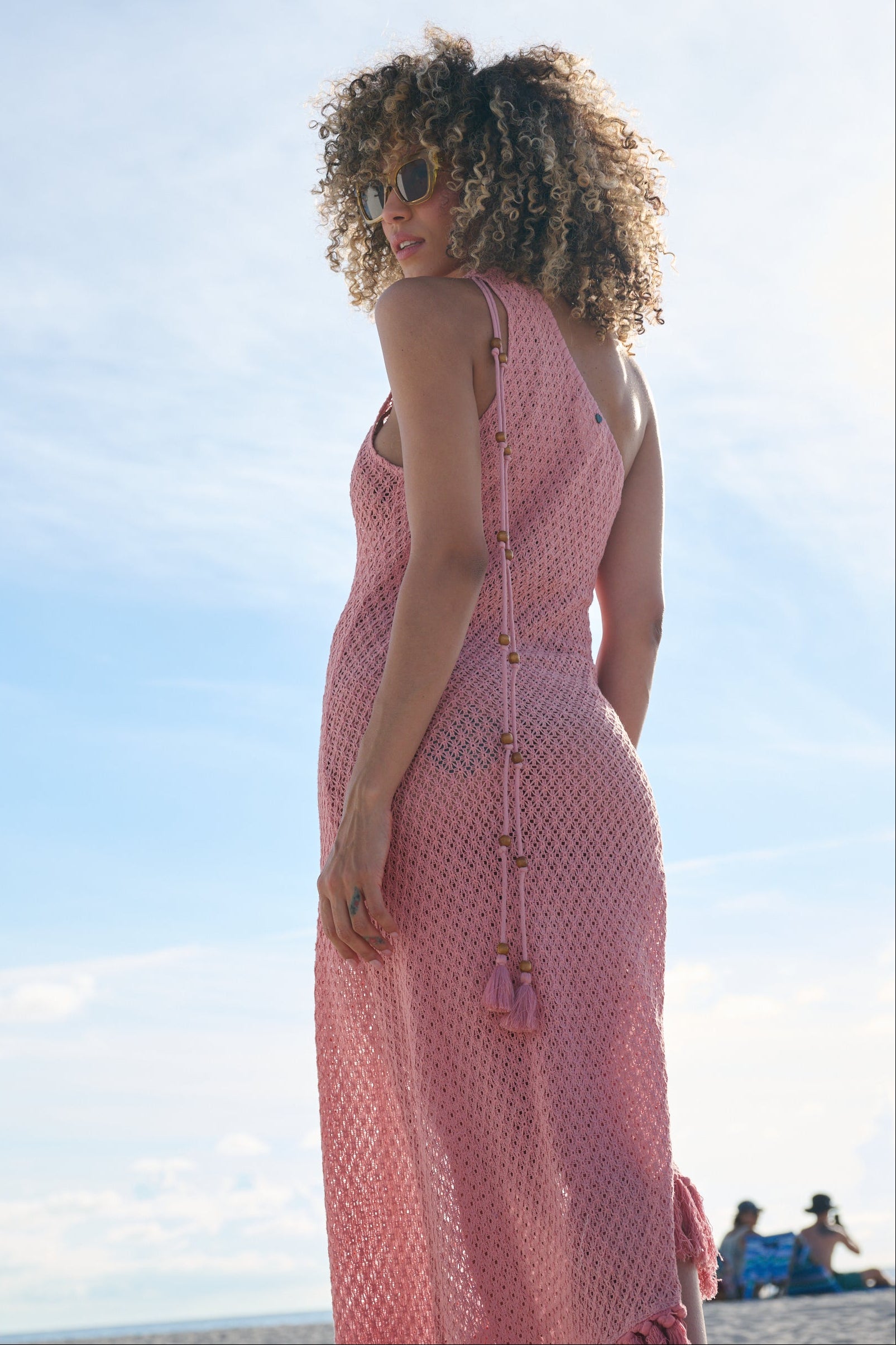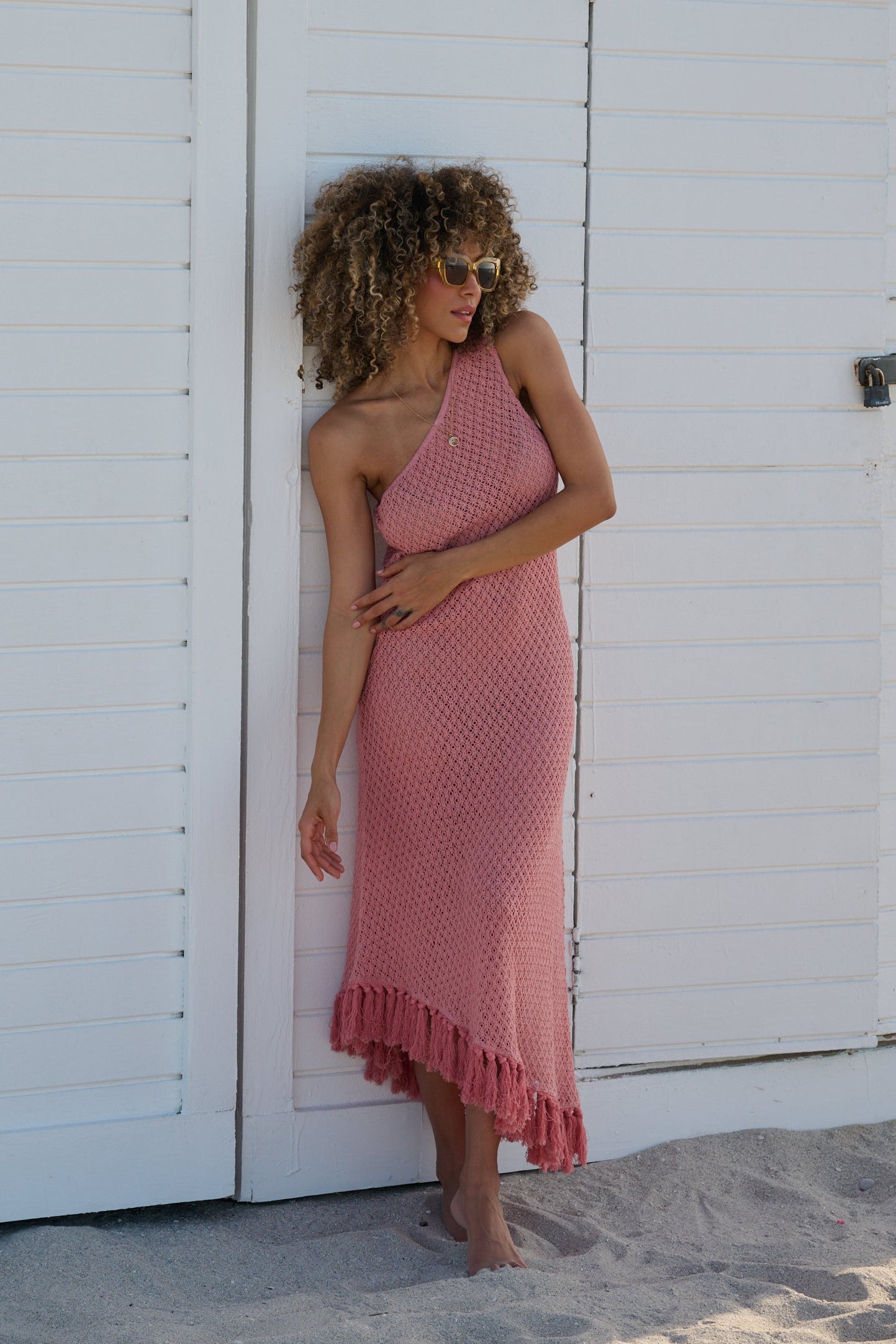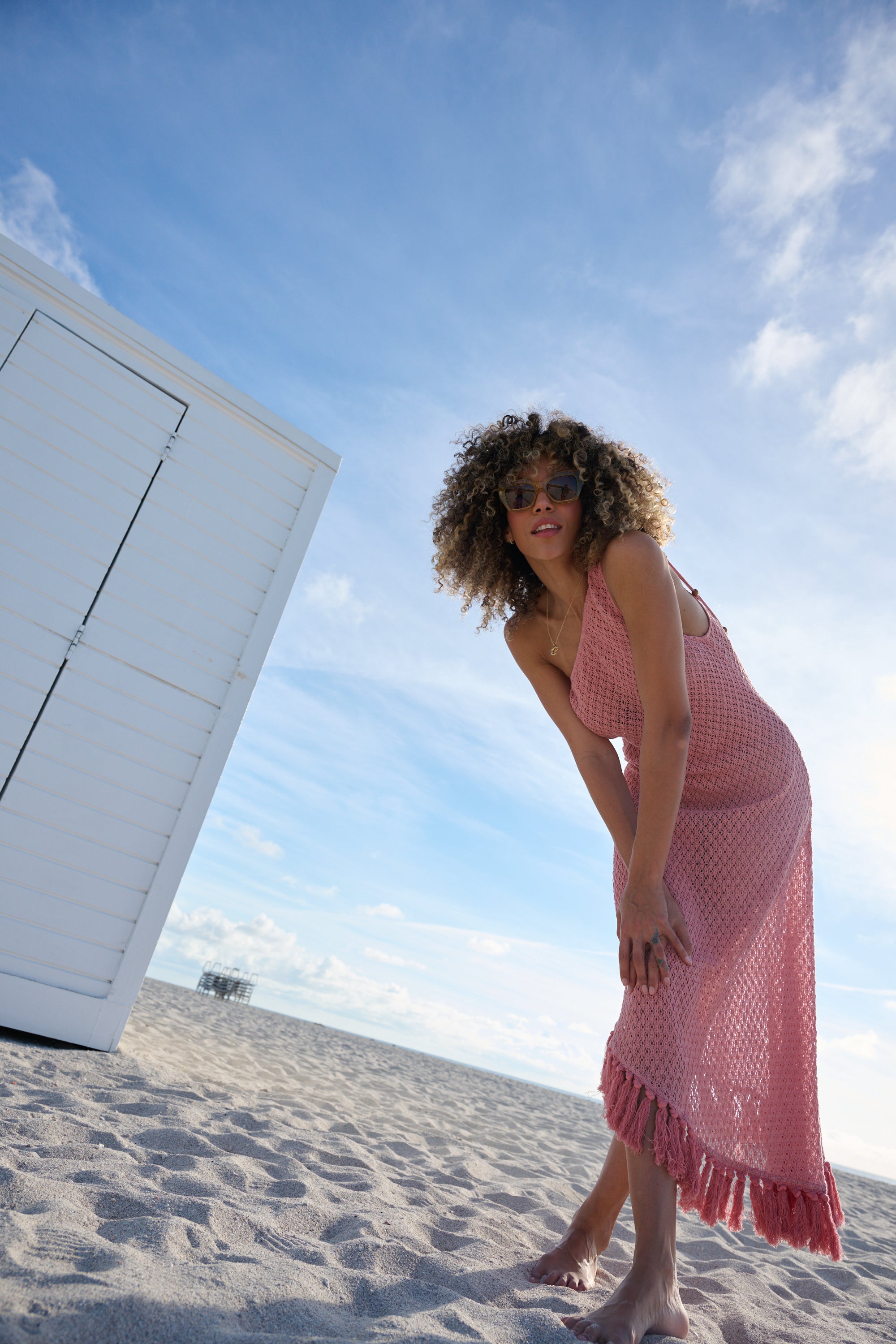 A soft, hand-crocheted maxi with a breezy open-knit design and tassel details. The Cora Maxi Dress drapes effortlessly for a flattering, relaxed fit. Your beach-to-dinner statement piece.