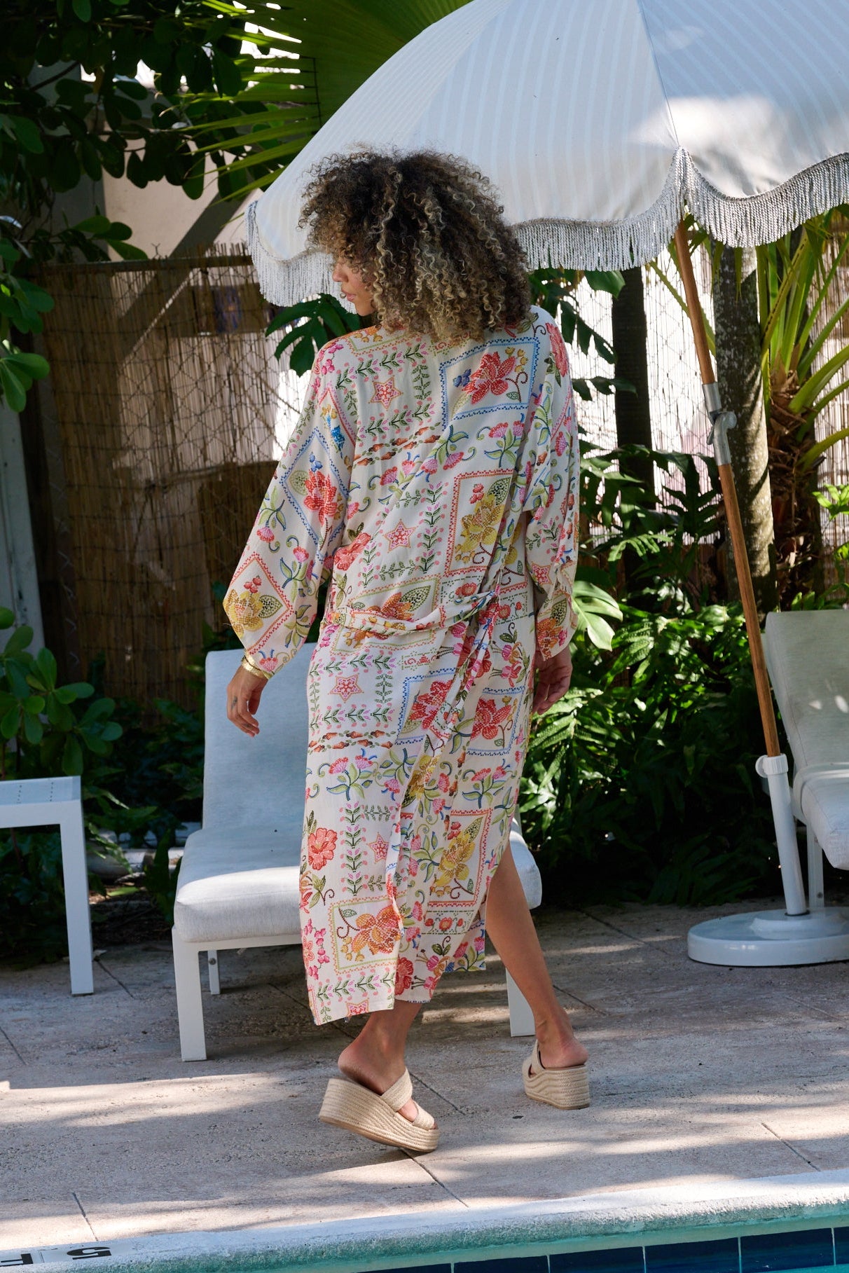 A breezy floral duster designed for effortless layering. With its flowing silhouette and soft drape, the Lala Duster adds a romantic, wanderlust feel to swimwear or everyday looks — light, airy, and endlessly versatile.